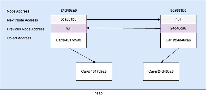 • LinkedList는 양방향 연결 리스트 구조로 구현되어있다.