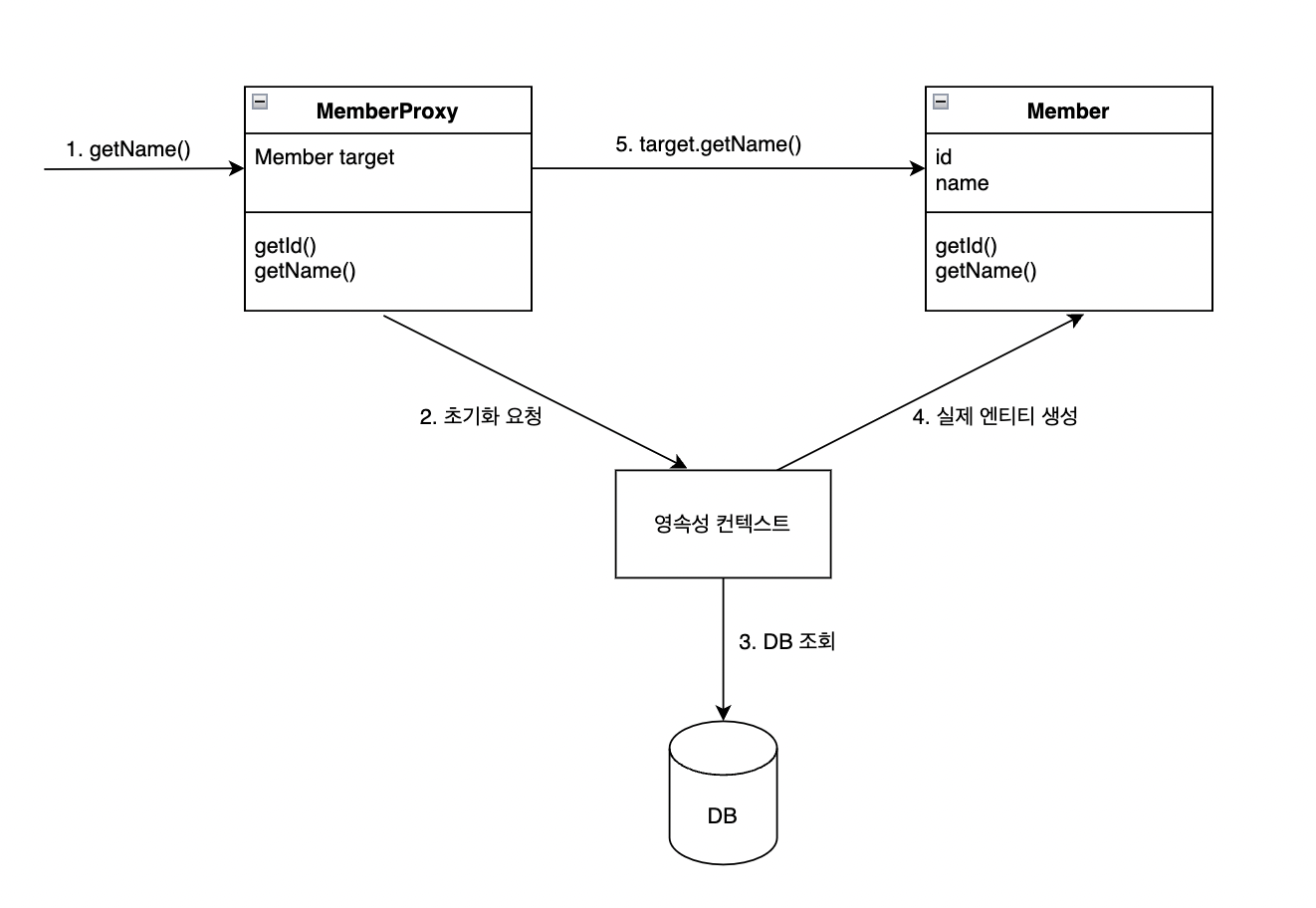 2. 프록시 객체는 실제 엔티티가 생성되어 있지 않으면 영속성 컨텍스트에 실제 엔티티 생성을 요청하여 초기화한다.